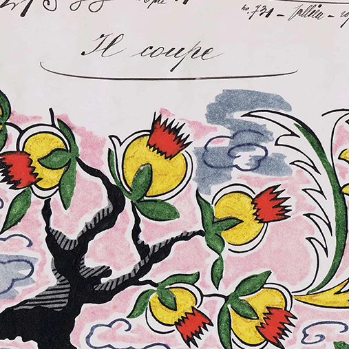 Print Sisters curate and produce eco, vintage artwork from their East London studio. Originally designed in 1929, this French textile design is truly alive with symbolism and good fortune, and has been lovingly revived, restored and reproduced using digital printing and ethically sourced materials. The pomegranate fruit is symbolic of fertility, beauty and eternal life, and is traditionally pictured on the legendary and abundant Tree of Life.